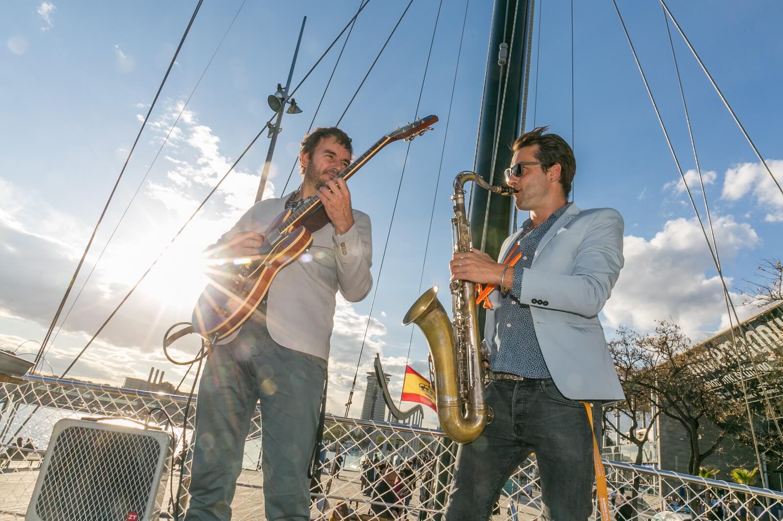 ¡Súbete a bordo de un catamarán con música en vivo y disfruta de la mejor vista del Skyline de Barcelona! Y como si esto no fuera suficiente, déjate enamorar por el sunset mientras tomas una copa con tus amigos. Este plan es perfecto para calentar motores antes de una alocada noche.